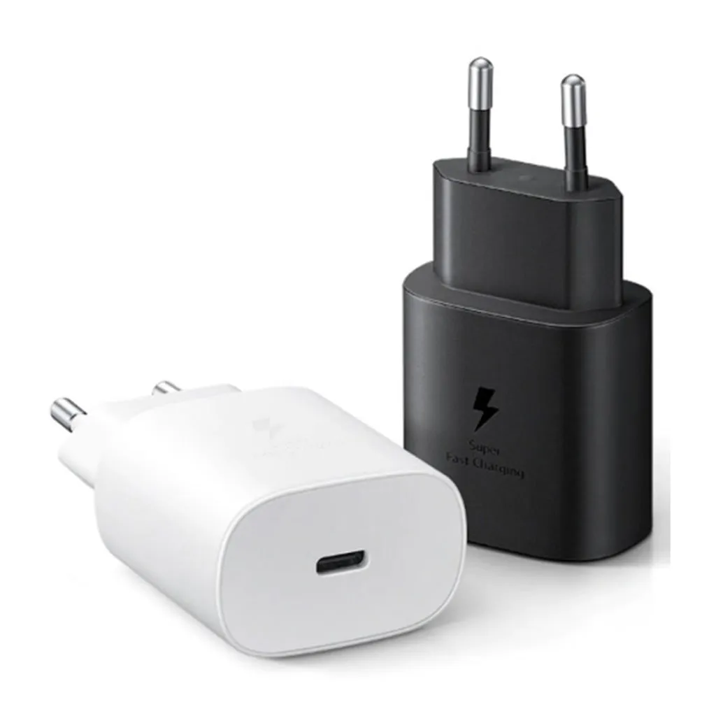 Samsung 25W adapter2-pinشارژر 25 وات اصلی سامسونگ با دو شاخه برق، مناسب برای شارژ سریع گوشیهای سامسونگ و دستگاههای دارای پورت USB-C. ایمن، قدرتمند و سازگار با شارژ سریع PD و PPS.